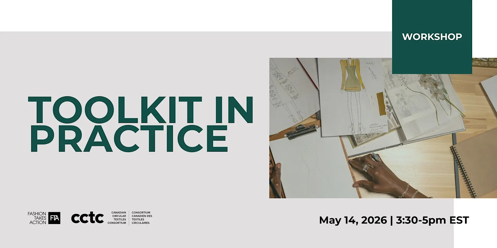 This event is presented by Fashion Takes Action (FTA), through its collaborative work convening the Canadian Circular Textiles Consortium (CCTC). Facilitated by: Marianne Coquelicot Mercier (CHROMA Consulting), Mika Unterman, and Fashion Takes Action.