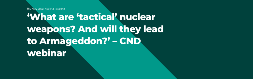 ‘What are ‘tactical’ nuclear weapons? And will they lead to Armageddon?’ – CND webinar